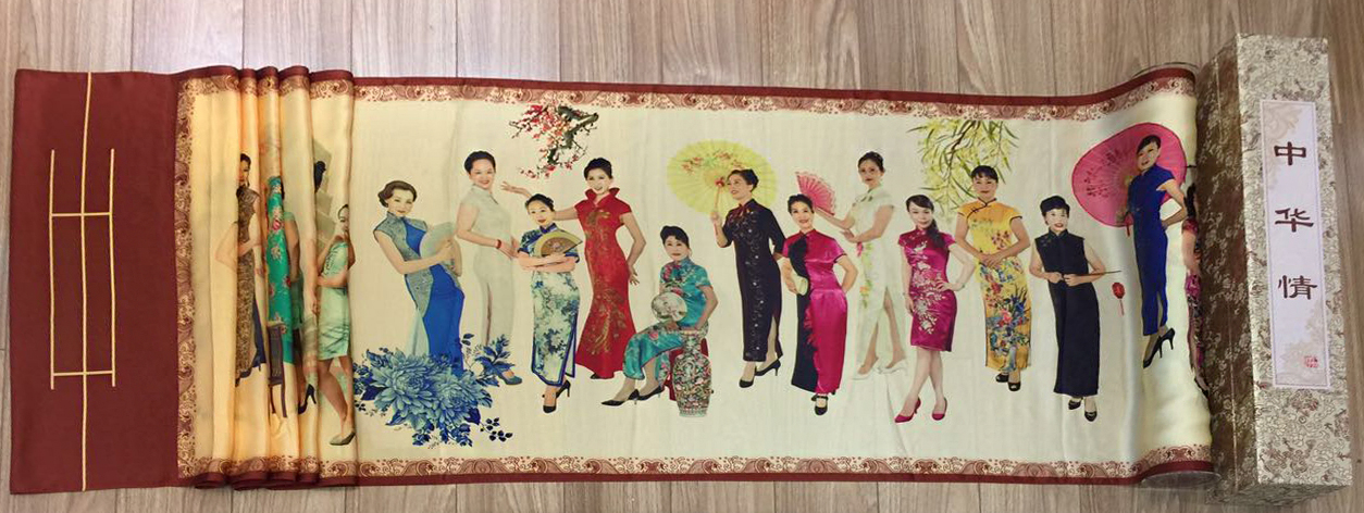 海上丝韵“中华情”真丝长卷由上海丝绸集团文化发展有限公司独立创意与制作,是海上丝韵又一科技与时尚完美融合的海派文化经典之作。该长卷不仅在丝绸印染技术上展现其精湛和独到之处,采用经特殊处理的12姆米真丝素绉缎面料,运用高科技定位与高精度数码喷印技术,将造型和表情不一的人物形象彩印于长1000厘米,宽65厘米的长卷上;从内容创意方面也展现出了独具一格的文化创新,上海丝绸集团文化发展有限公司与澳大利亚华人商会合作,共同邀请了来自中国与澳大利亚的108位女士,身着最具海派魅力的旗袍,在一幅超10米的真丝长卷上,共同展现海派魅力与中华情谊。