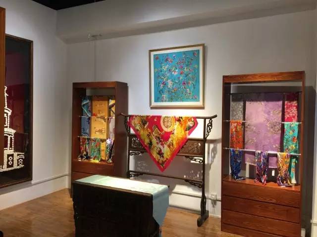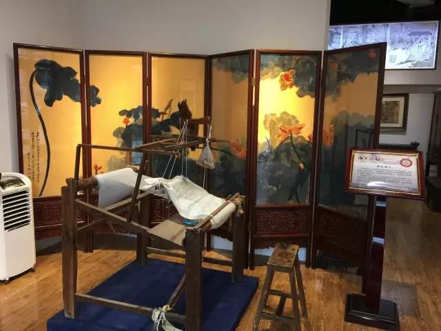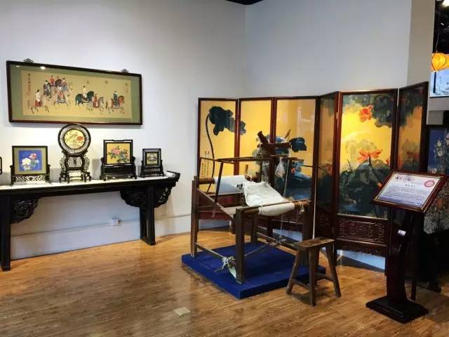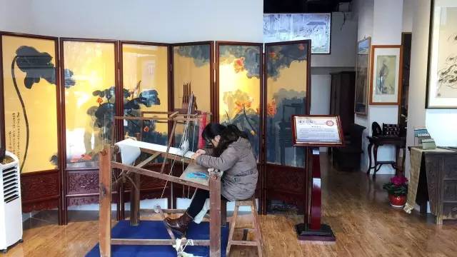 大世界非遗文化馆现场展示海派缂丝作品,以张大千的水墨画屏风《荷花》最为引人注目,更多的大师作品现场都可以观赏到,这也是除了吴兴路海上丝韵旗舰店之外缂丝展品最多的展馆。