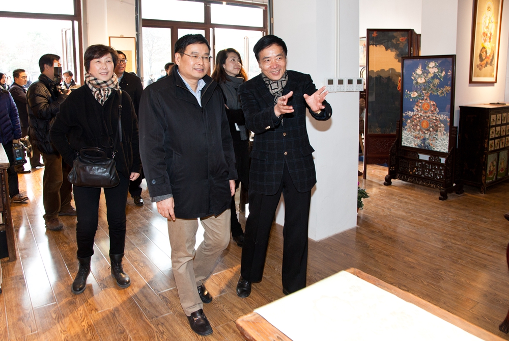 开馆当天上午,黄浦区黄浦区区委书记汤志平,黄浦区区委副书记、区长杲云在区委宣传部等领导的陪同下参观了海上丝韵非遗文化馆,仔细了解了文化馆的展示亮点、缂丝制作工艺、大世界吉尼斯纪录的真丝长卷以及海上丝韵为大世界开幕度身定制的艺术作品《蚕·韵》,并就如何发扬缂丝等非遗工艺与上海丝绸集团文化发展有限公司董事长吕钢进行了交流和探讨,大家一致对海上丝韵在传承非遗工艺的用心和努力表示高度赞赏。