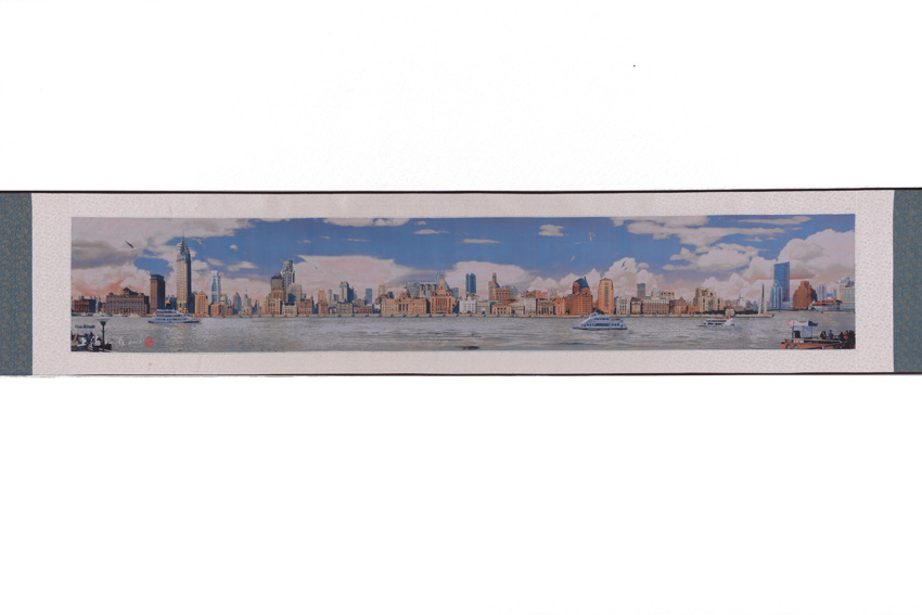表现上海外滩风貌的织锦画由来已久,但多以上个世纪的老外滩为图案。时隔数十年后,“海上丝韵”委托上海徐汇区摄影家协会耗时四个月,重新拍摄21世纪的外滩全景,以此开发出全长1.6米的织锦巨作,将长达十五公里的外滩风貌置入其中。